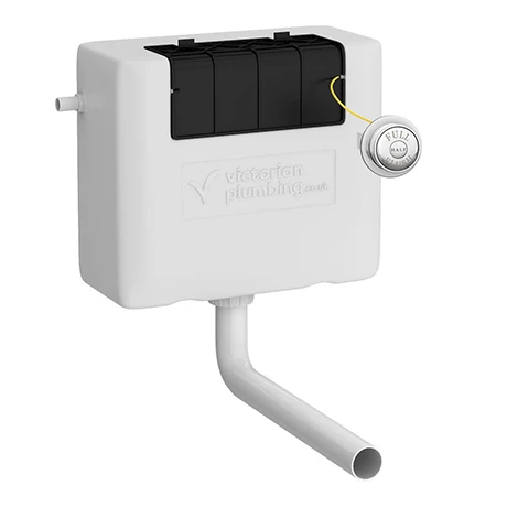A durable white plastic dual flush concealed WC cistern to be installed with any of our back to wall toilets and vanity WC units. The dual flush allows you save on water consumption. Cistern features easy front and top access for maintenance. Comes supplied with a traditional style push button mount for adding the perfect finishing touch for your WC unit, designed to work with the existing cable operated valve.