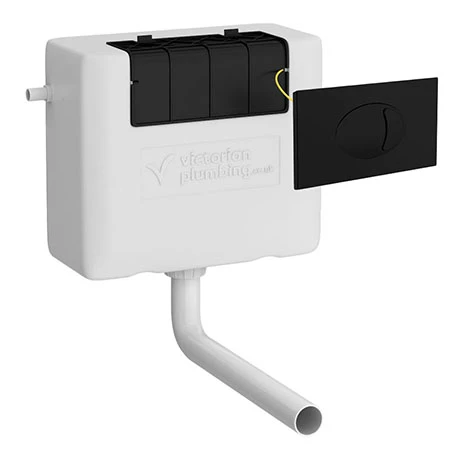 Bring streamlined simplicity to your bathroom with this Dual Flush Concealed WC Cistern & Large Matt Black Push Button Plate. Designed to be installed behind a panel or inside a unit for a neat look, it fits with any Victorian Plumbing back to wall toilet or vanity WC unit. The concealed cistern is made from hardwearing plastic and attaches to a large push button plate. It has a matt black finish that will look right at home in any modern bathroom. The dual flush cistern mechanism means you’ll save water as well as money compared to a single flush design.