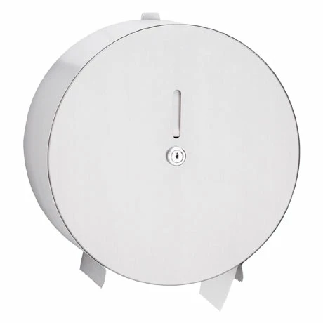 The CHRX669 is a quality constructed jumbo toilet roll holder made from 0.8mm thick satin finish stainless steel. It features an inspection window to indicate when the roll is running low and a lockable front cover. The holder has a capacity for one roll up to 260mm in diameter. Includes stainless steel screws and dowels.