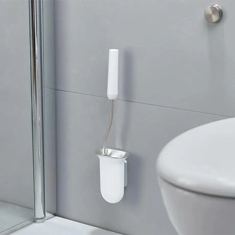 The Joseph Joseph Flex Steel wall mounted toilet brush and holder features a flexible, D-shaped head that reaches all areas, even under the rim. Unlike conventional toilet brushes that hold dirt and liquid and with bristles that distort over time, the Flex has widely spaced bristles that prevent dirt clogging, allowing liquid to drain quickly and minimising drips between cleaning and storing.