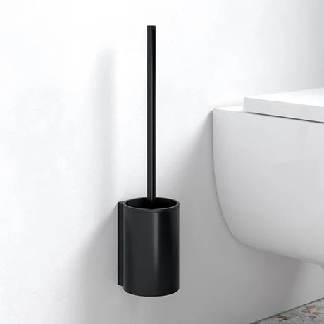 The Keuco Plan accessory range offers a wide collection of practical products to choose from. This wall mounted toilet brush and holder comes in a stylish yet functional design and includes a spare brush head. Made from premium materials with a sleek matt black finish.