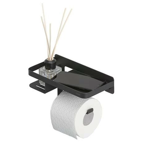 The unique Tiger Caddy Toilet Roll Holder with Shelf. This all-in-one toilet solution offers space for fragrance sticks, your mobile phone, wipes or even a storage box sanitary products. Bring the modern look to your bathroom with this variant in Black.