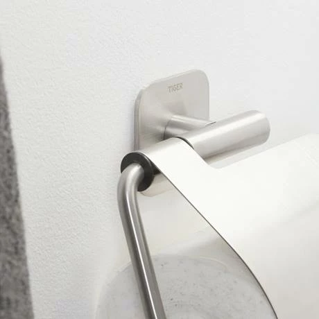 This toilet paper holder with cover from the Tiger Colar range is stylish and completely on-trend. The holder is robust, but thanks to its simplicity in design, it has an open and friendly design. The Colar toilet paper holder can be mounted in its entirety with the supplied strong, double-sided 3M tape.