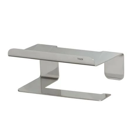 This toilet roll holder with shelf from the Tiger Colar range is stylish and completely on-trend. The integrated shelf offers practical storage space for toiletries or mobile phone. The Colar toilet roll holder can be mounted in its entirety with the supplied strong, double-sided 3M tape.
