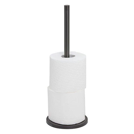 The Tiger Tune freestanding spare roll holder features a brushed black metal finish, combined with matt black accents. With this accessory, three extra rolls of toilet paper can be neatly stored near your toilet. This spare roll holder is equipped with a plastic base so that the item stands stable and does not cause scratches.