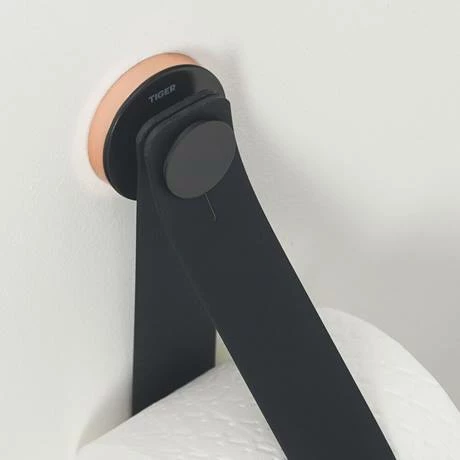 The Tiger Urban Spare Toilet Roll Holder in Black comes with two decor rings. The decor rings, in the colours copper and grey, make it possible to add a subtle color accent. It is also possible to mount the toilet paper holder without the decor ring, making it very easy to adapt the product to the desired style. The flexible belt offers space for two extra rolls of toilet paper, so that there is always enough paper available.