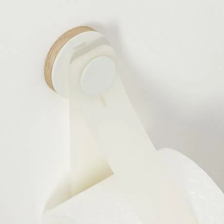 The Tiger Urban Spare Toilet Roll Holder in White comes with two decor rings. The decor rings, in the colours light oak and grey, make it possible to add a subtle color accent. It is also possible to mount the toilet paper holder without the decor ring, making it very easy to adapt the product to the desired style. The flexible belt offers space for two extra rolls of toilet paper, so that there is always enough paper available.