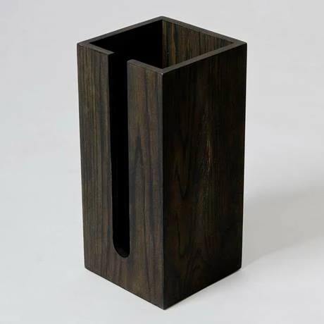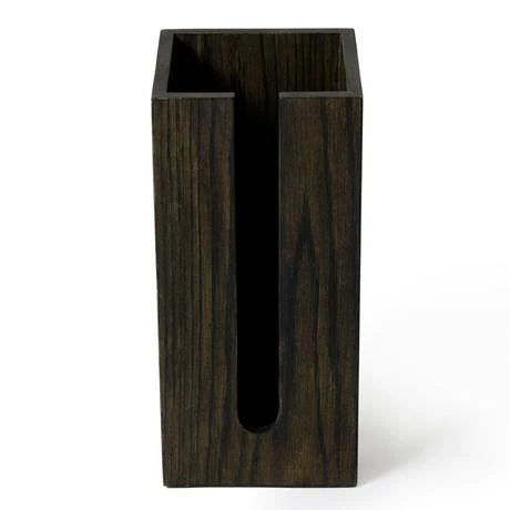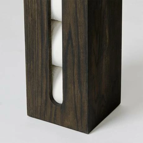 Never get caught short again with this toilet roll storage box. It features a slotted front panel to attractively display the rolls and easy to take out a roll when needed. Beautifully crafted from white oak and finished with a dark stain water resistant lacquer. The silicone feet stop it from slipping and prevents your floor from being scratched.